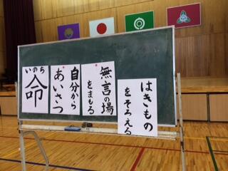 本日1校時に小学部全員が集まり、「登校安全会」がありました。