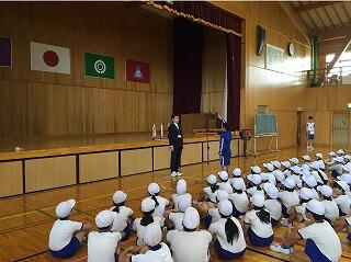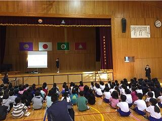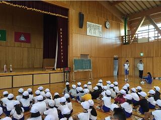 本日の朝の時間に小学部の保健・給食委員会の子達が集会を開いてくれました。