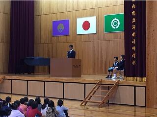 4、6、8年生の代表児童生徒が2学期のふり返りと3学期に向けての意気込みを発表してくれました。