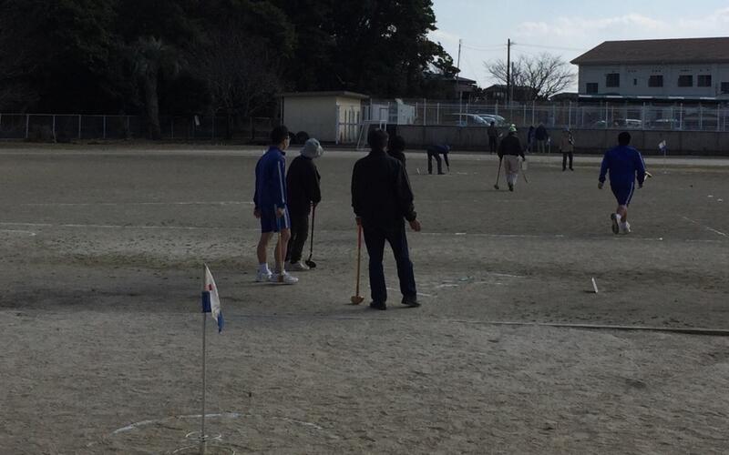 本日の5・6時間目に毎年恒例の本校9年生と地域の方との交流グラウンドゴルフ大会が行われました。