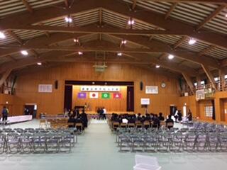 平岩小中学校では小学生と中学生が力を合わせて入学式の準備をします。