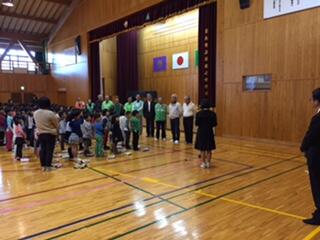 本校ならではの1年生と7年生が手をつないで入場してくるシーンは、とても微笑ましいものでした。