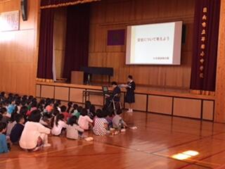 本日の全校朝会で地域ボランティアの方の紹介がありました。