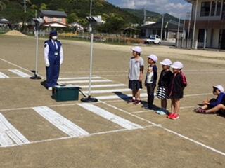 1校時は1~4年生を対象に交差点の渡り方について教えていただきました。