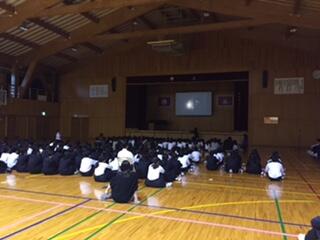 生徒会役員の生徒が安全について全校児童生徒に訴えました。