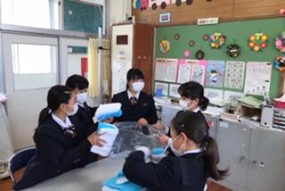 保健・給食委員会は来年度のふきんの準備をしていました。