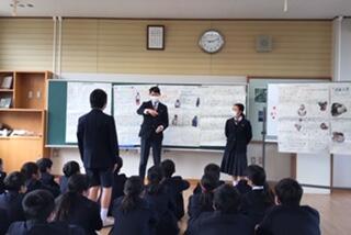 中学部が2学期に行った職場体験について報告をしてくれる会が開かれました。
