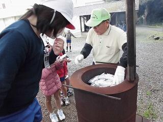 1・2年生が地域の方のご協力を得ながら育てた芋を使って焼き芋をしました。