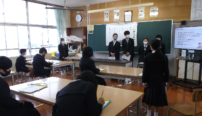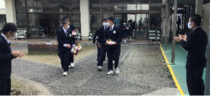 ゴールしたら班ごとに集まり、9年生へ感謝の気持ちを伝え、9年生からはみんなへメッセージをもらいました。給食時間の放送では、在校生、これまでの担任の先生からの9年生へ感謝のことばが贈られ、とてもあたたかな気持ちになりました。