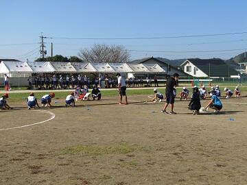 10月2日(土)に運動会が行われました。今年は規模を縮小して、小中合同で午前中のみで実施しました。当日は1~9年生までの全校児童生徒が、徒走、リレー、団技、ダンス、応援等に力いっぱい頑張ってくれました。また、運動会の開催にあたりまして、保護者の皆様、地域の皆様には、参観の制限やマスク着用等、コロナウィルス感染予防対策にご理解とご協力いただき本当にありがとうございました。子どもたちも元気いっぱいで、とてもいい運動会となりました。