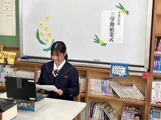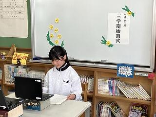 始業式では、4年生と8年生2人が代表作文の発表をしてくれました。