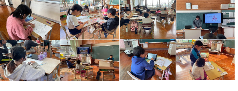 3・4年生は、国語の学習をがんばっていました。プリントをしたり、音読したりしていました。