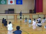その後、体育館で離任式を行いました。離任式では、離任される4名の先生方を紹介した後、離任のあいさつをしていただきました。