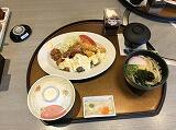 昼食のメニューは、子どもたちに人気のチキン南蛮やエビフライはじめ、茶碗蒸し、うどん、デザート、ドリングバーなど盛りだくさんです。