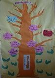 保健室前に「美々津幸さん」を掲示しています。いっぱい広げた幸さんの口には、たくさんの歯のシールが貼られており、現在の全校の治療状況が一目で分かるようになっています。