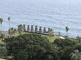 イースター島から正式な許可を得て復元されたモアイ像に、子どもたちはびっくりしていました。