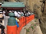 大型バスの駐車場から鵜戸神宮へ向かう参道がかなり長い道のりで、子どもたちは汗びっしょりになりながら、ようやく本殿にたどり着きました。