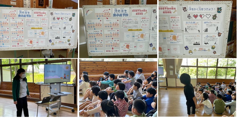 保健室の先生が、熱中症予防の掲示を作成しています。とても分かりやすく書いてありました。