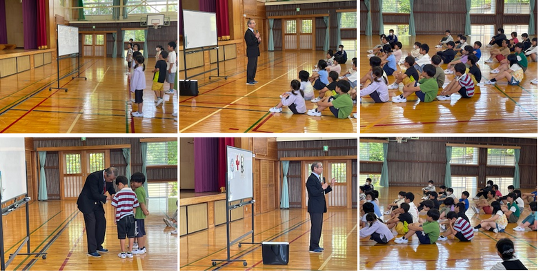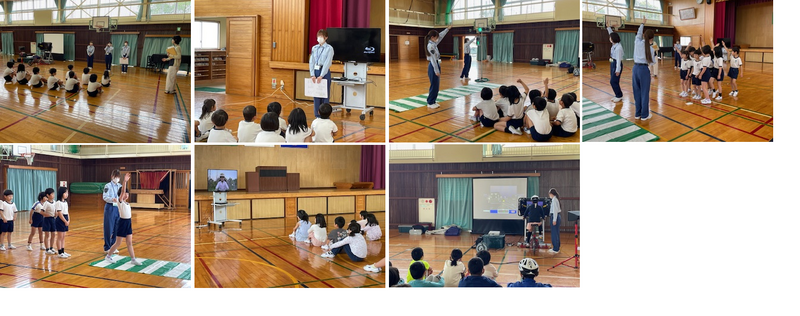 今日は、交通安全協会の方に来ていただき、体育館で交通安全教室を行いました。