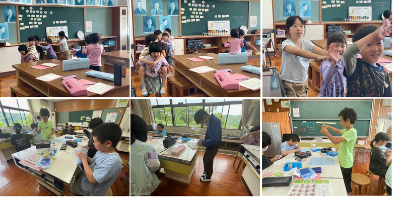 1・2年生は、音楽室で音楽に合わせて楽しく活動していました。5・6年生は、家庭科室で裁縫をがんばっていました。