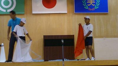 団の色が分かると、あちこちで歓声が上がっていました。その後の団長の挨拶でこれから団が気持ちを一つにして頑張ろうという気持ちが沸いてきているようすです。