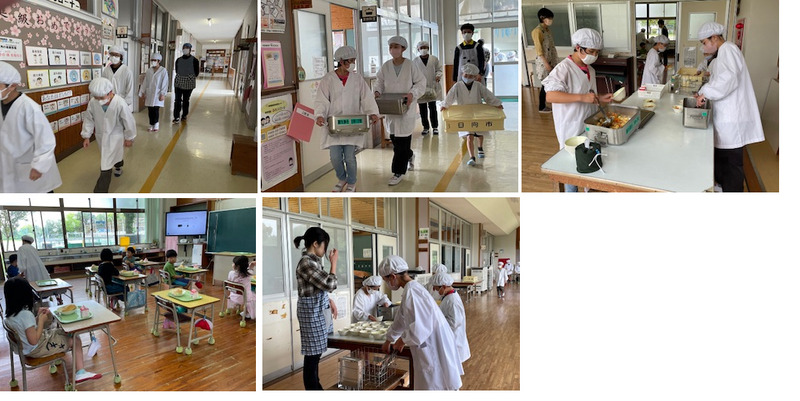 今朝は、1年生が6年生に給食当番のお礼の手紙を届けていました。6年生も喜んでいました。