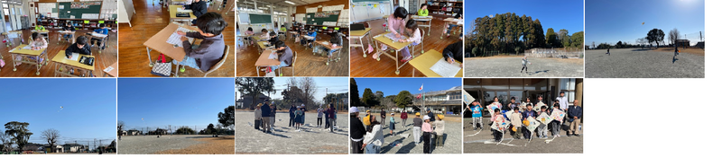 本校は、5・6年生が参加しました。風が強く、揚げるのに苦戦しましたが、それぞれがんばっていました。凧作りから今日まで、いろいろな方にお世話になりました。ありがとうございました。