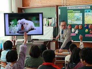 身近な生き物たちや家畜、犬、猫の命について考えると共に自分自身の命についても見つめ直す学習でした。子どもたちは、講師の先生の話に引き込まれ、楽しい中にも大切な学習を体験することができました。