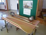 給食センターから、給食調理用の巨大しゃもじ(スパテラ)及び汁杓子もお借りしました。休み時間に多くの子どもたちが手にとって、そのBigさにびっくりしていたようです。
