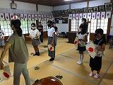 夏季休業に入りましたが、4年生以上の女子は閉会式に向け、立磐神社の社務所で「立縫の舞」の練習に励んでいます。この「立縫の舞」は美々津の伝統的な踊りの1つですが、ここ数年はコロナ等の影響もあり、練習自体していませんでした。そこで、立磐神社の方に1から指導を受けています。1学期の終わりに、学校に来て指導をしていただいたこともありましたが、現在は社務所の方で練習を進めています。