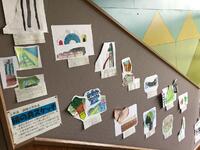 図画工作の学習では、様々な作品の表現方法を学んでいます。校舎内の柱や階段手すりを利用して、子どもたちは、自らの発想で作品を仕上げていました。遠近を意識して作られており、見る角度によっても見え方が違ってきますね。