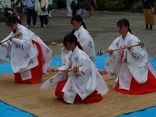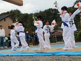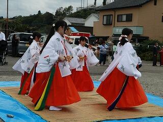 美々津地区では、神武天皇の御船出伝説で名高い神社として広く知られている、立磐神社例大祭が行われました。神事を執り行った後、町内を神輿が巡っていき、立ち寄る先々で、小・中学生等による神楽奉納(浦安の舞、神楽、立縫の舞)も行われていました。本校の子どもたちも立縫の舞はじめ、祭りでの様々な活動に意欲的に参加するなど、大いに盛り上げてくれました。