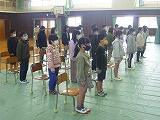 前回の地区集会で来年度の登校班の確認を受けて、登校班バトンタッチ集会を行いました。