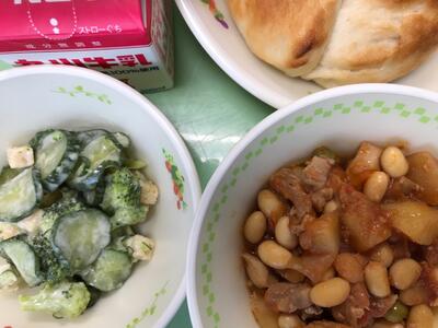米粉パン 大豆のチリソース煮 シーザーサラダ
