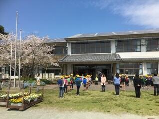 校長先生から、「笑顔いっぱいの美々津小学校にしていきましょう」という話がありました。桜の花が満開に咲き誇り、子どもたちも新学年に向けてやる気いっぱいの様子が感じられました。