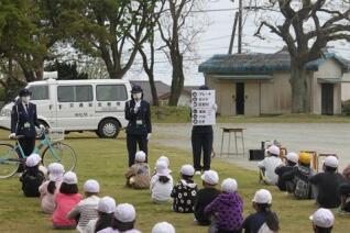 日向警察署美々津駐在所及び日向市交通安全協会の方々においで頂き、交通安全教室を実施しました。
