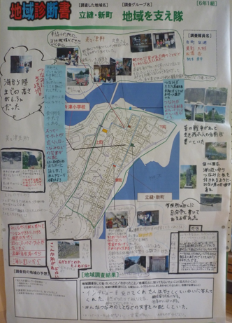 前回までの学習では、地域調査した結果について、気付いたことや分かったこと、地域の方に伝えたいこと、地域のよさなどを、各グループで地域診断書に詳しくまとめることができました。