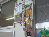 七夕の日に合わせて、養護教諭が保健室前にちょっとしたミニ笹竹の飾り付けを行いました。