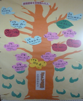 課題図書を読破した子どもが16名となりました。どれくらい増えるか楽しみです。みんなで読書の木を大きく育てましょう。