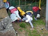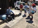 地区ごとに分かれて、奉仕団の方々と一緒に地区の清掃活動を行いました。紙くずやビニール袋、空き缶、ペットボトルなど、たくさんのごみを拾い集めることができました。自分たちの住んでいる地区がきれいになり、子どもたちはとても嬉しそうでした。