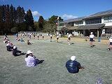 また、低・中・高学年別に、前回し跳びをどれくらい長い時間跳べるか、持久力競争もしました。目標の時間(低学年:1分 中学年:1分30秒 高学年:2分)をクリアできるように頑張ることができました。