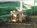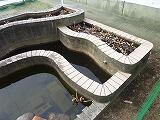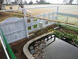 池の周りには鮮やかな白塗りの柵、きれいに張られた網、濁りなくきれいに入れ替えられた池の水、水面に浮かぶすっきりしたホテイアオイ、水の流れを感じるような滝、また、池を上から覗くことができるように、しっかりとした頑丈な台まで備え付けています。
