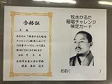 牧水かるたに親しむことを通して、郷土の生んだ国民的歌人・若山牧水先生の残した数多くの短歌にふれると同時に、郷土に誇りを持ち、郷土を愛する心を育てるというのがねらいです。昨年度の3学期から、「牧水かるた暗唱チャレンジ」にも取り組んでいます。これは、AからEまで20首ずつ分けた牧水短歌を覚えていくというもので、上の句を示されたあと下の句を言えたら合格となります。1首につきハンコが1つもらえ、20個ハンコがたまるとシールがもらえるというシステムになっています。100首全部覚えると合格証が交付されることになっています。今のところ、トップの子どもは50首合格しています。さあ、だれが一番最初に合格証を手にできるでしょうか。