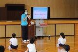 また、保健主事の先生より、6月の生活目標の「健康に気をつけよう」に関するお話がありました。おさるのジョージのぬいぐるみを使って、手洗いや歯磨きの大切さについて分かりやすく話していただきました。現在、県内のコロナウイルス感染者は減少していますが、油断することなくこまめに手を洗い、手指消毒を徹底して身体を清潔に保つということはとっても大事なことですね。