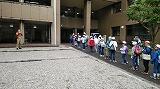 下の写真は、地区別下校の様子です。本校では、できるだけ子どもたちが帰る際、一人にならないように、毎日地区別下校を実施しています。子どもたちは担任の先生から、どしゃぶりなので、気を付けて帰るように声かけをしてもらっていました。