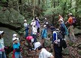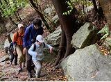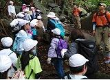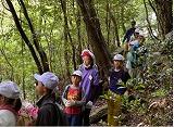 本来ならば、むかばき山の雄岳山頂まで登山する計画でしたが、昨日来の雨により、増水や地盤の緩んでいる危険な箇所も見られることから、安全面に配慮して、途中の滝までの登山に変更させていただきました。