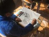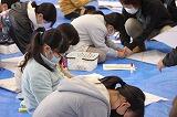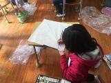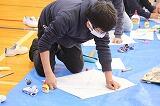 5年生は、昨日作った凧にさっそく絵を描きました。