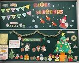 図書室の壁面に、華やかで可愛らしいクリスマスの飾りを掲示しています。