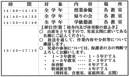 ご案内していましたように、明日は参観日及びPTA奉仕作業となっています。前回4月の参観日は中止となったことから、今回が本年度初めての参観日となります。