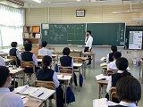 美々津中学校の校長先生が本校に来られて、出前授業をしてくださいました。